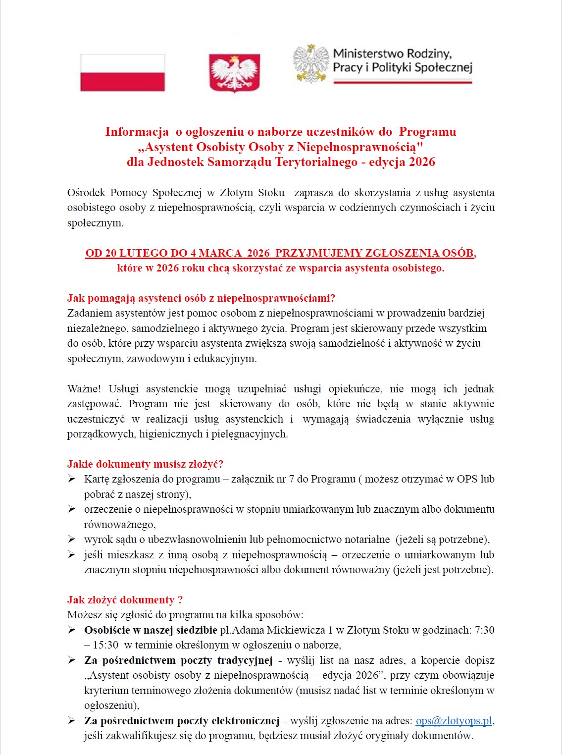 | 2 | ASYSTENT OSOBISTY OSOBY Z NIEPEŁNOSPRAWNOŚCIĄ – edycja 2026 |